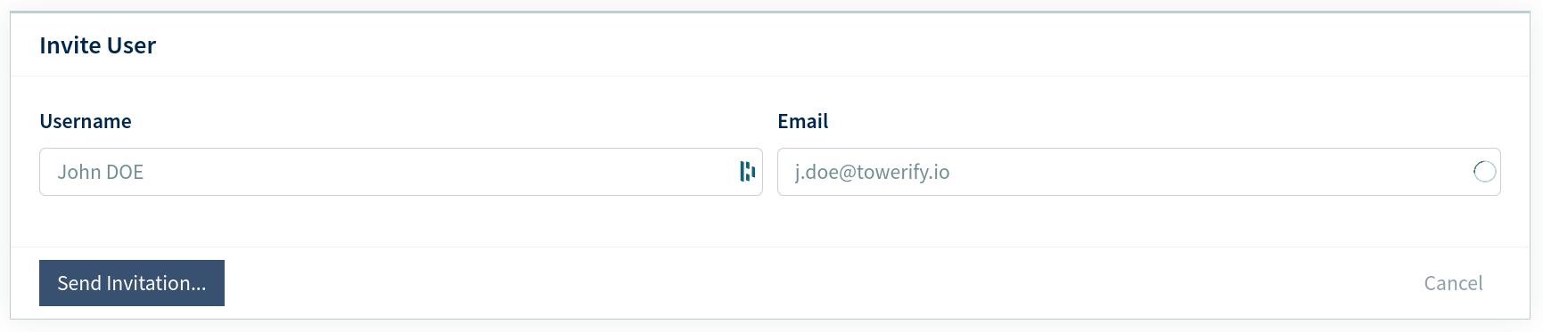 Après saisie de l'email et du nom de l'utilisateur, une invitation lui sera envoyée avec un lien de connection à la plateforme.