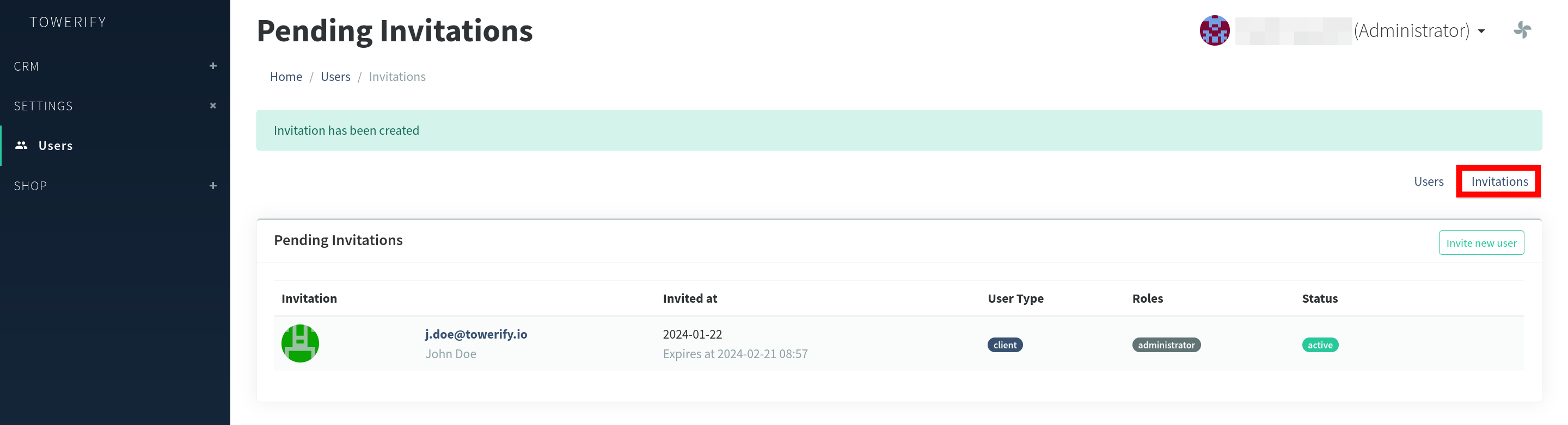 Il est fortement recommandé d'utiliser la fonctionnalité d'invitation des utilisateurs pour créer de nouveaux comptes :